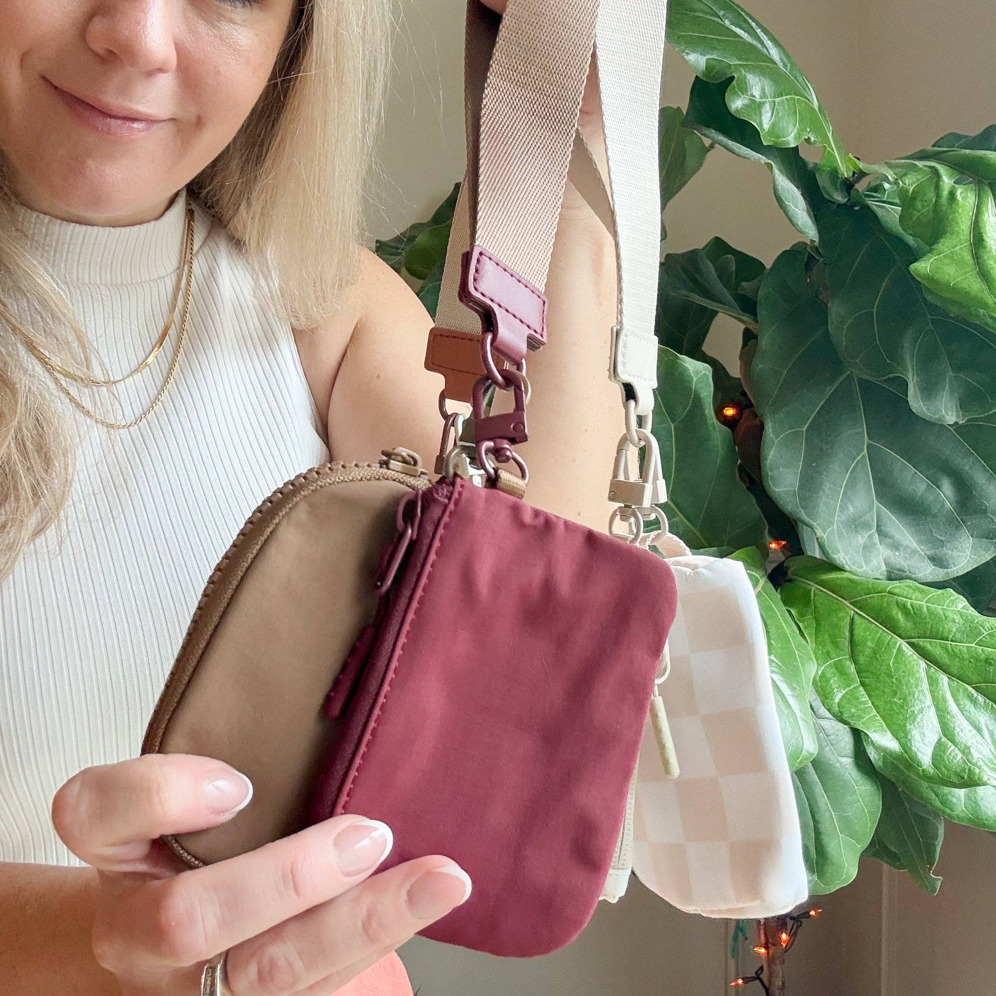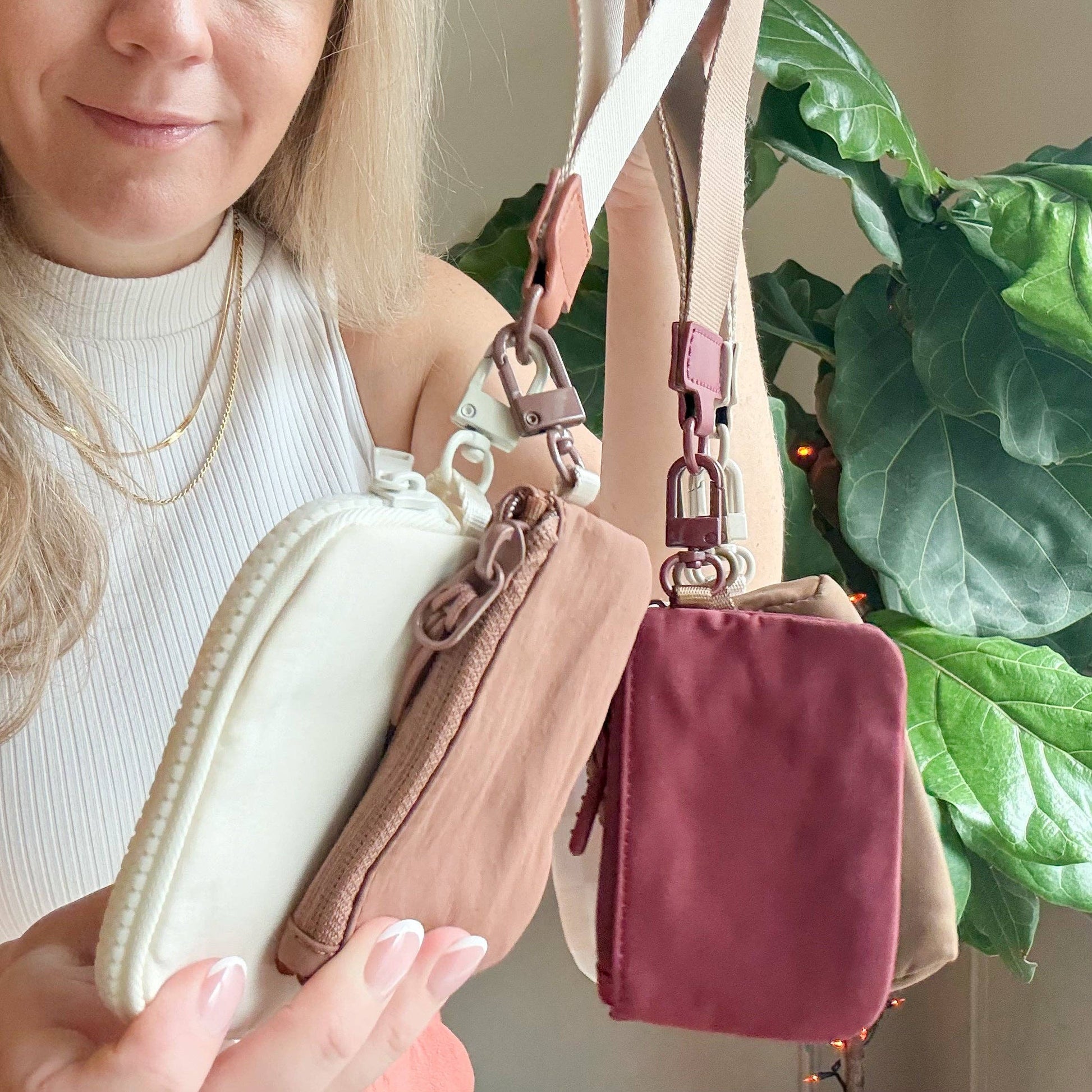 Indulge in effortless and stylish organization with our Dual Pouch Wristlet, crafted with water-repellent fabric and removable pouches. These versatile pouches can be used together or separately, allowing you to customize your look and functionality. Our wristlet features a polyester lining, durable nylon pouch, and elegant gold hardware, with pouch dimensions measuring 11.5cm x 0.5cm x 7cm.