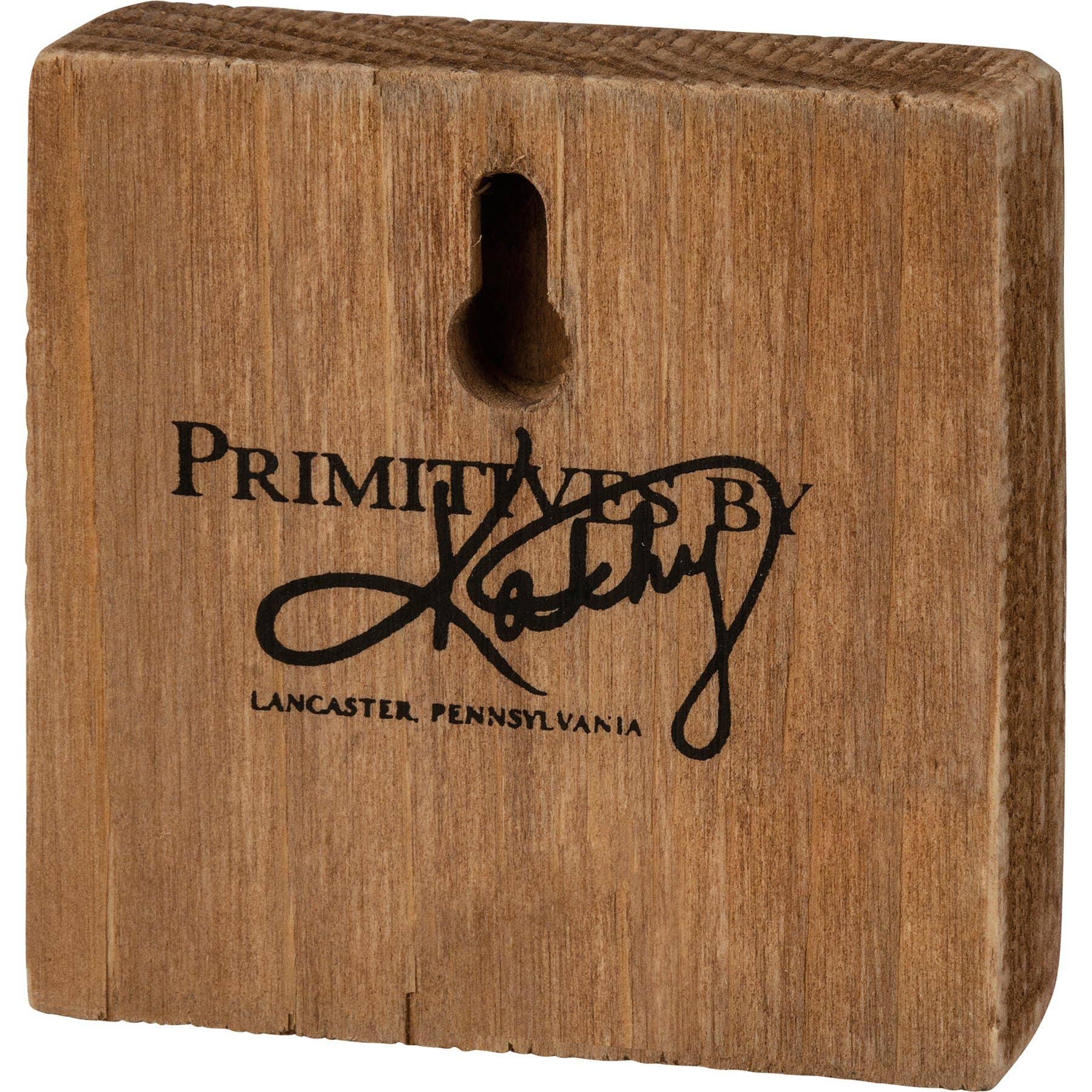 A wooden block sign featuring a Santa design. Design is replicated from original artwork painted onto burlap canvas, giving the art a unique depth and texture. Easy to hang via predrilled keyhole slot or can free-stand alone.